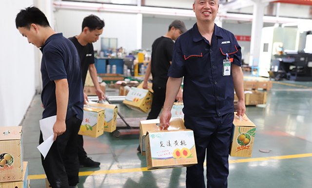 隨著一輛大貨車載入廠區(qū),從炎陵高山采購回來的黃桃迫不及待地想要奔赴到每一位西迪員工手中。在炎炎夏日中給員工送去清涼,將黃桃作為防暑降溫慰問品發(fā)給公司全體員工。盡管外面40度的高溫,領(lǐng)到黃桃的西迪人的內(nèi)心卻是無比甘甜、無比清涼。